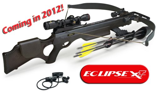 The Eclipse is an amazing crossbow based on our famous 200 pound thumbhole platform and built to appeal to either the hunter who prefers to lurk in the darkness by hunting from a ground blind or else shooters who are attracted to the "black gun" appeal of modern tactical styling. The Eclipse XT will deliver a 350 grain arrow at 330 fps with pinpoint accuracy and more than enough penetration to take all North American game with ease. It's trigger is outstanding and like all Excalibur's its reliability is without compare. Its black "carbon fiber" finish is both handsome and functional and the Eclipse XT comes with our effective S5 sound and vibration control system installed and a matching cheek piece. The Eclipse XT comes in a complete package including our Shadow-Zone scope and mounting hardware, 4 fire bolt arrows and target points, our quiver mounting bracket and a matching quiver. Color is black carbon.